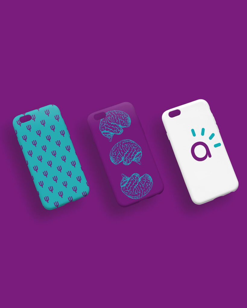 Por isso ao invés de representar a psicologia tecnicamente, representamos o momento de clareza que reorganiza a experiência do paciente. Exploramos o ponto de clareza comum sendo uma exclamação vocálica: o “A”, mas não como letra e sim como representação do momento em que as ideias se conectam.
